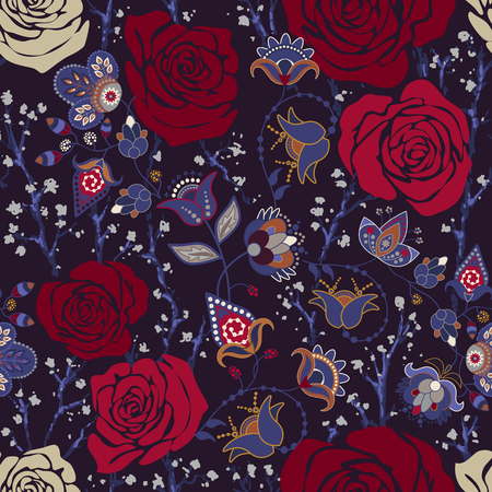 バラとカラフルなパターン 装飾的な花 シームレスなパターン Iphoneカバー テキスタイル ウェブ カード 招待状 カーテンのための壁紙のイラスト素材 ベクタ Image