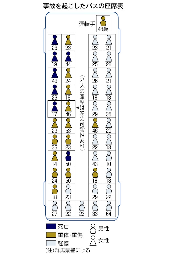 死亡7人すべて左側 座席で明暗 関越道バス事故 日本経済新聞